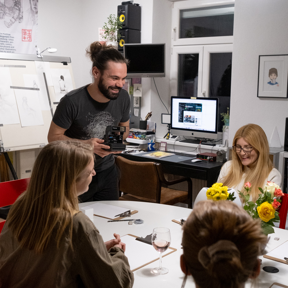 The focus will be on parallel and central perspective, various viewpoints and depth techniques. Basic construction techniques provide the framework for drawing things, people, animals – any drawing motif – correctly in depth and space. This theory is extended through practical exercises.